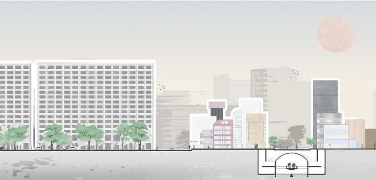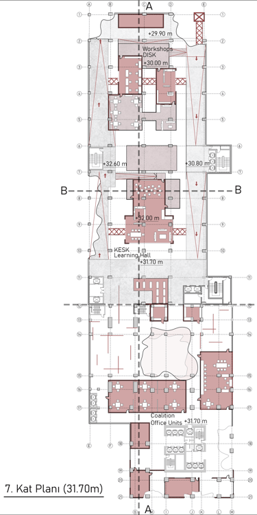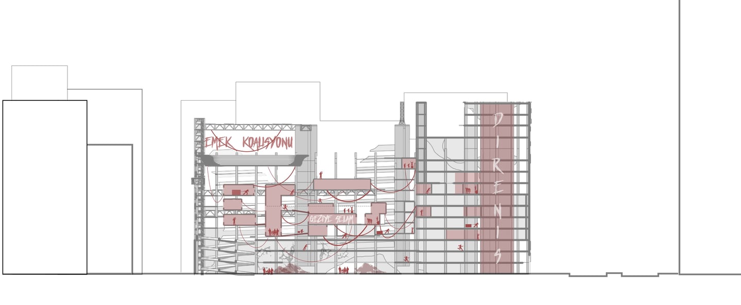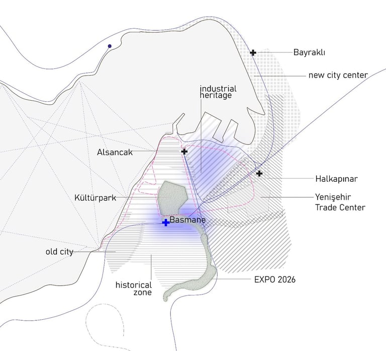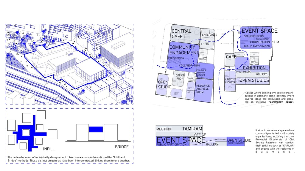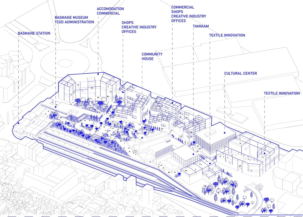 İzmir, Konak, Basmane’de proje, endüstri mirasının yeniden işlevlendirilmesini kullanarak sosyal ve mekânsal eşitsizlikleri azaltıyor. Farklı kentsel alanları birbirine bağlayan örtüşen mekânlar yaratarak, kamu yararını ve ekonomik fırsatları teşvik ederken mekânsal bütünlüğü koruyor ve şehir sakinleriyle doğrudan etkileşim sağlıyor.